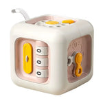 Ce joli cube aux couleurs douces est bien plus qu’un simple jouet : c’est un concentré d’activités sensorielles pour stimuler la curiosité naturelle des tout-petits. Chaque face propose une manipulation différente : boutons à tourner, roulettes à faire glisser, chiffres à aligner, interrupteurs à activer… Des gestes simples qui demandent attention, précision et coordination, tout en développant la motricité fine.